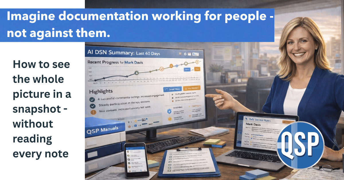 That’s why QSP exists: to give you tools that reduce overwhelm, increase visibility, and let your team focus on what really matters. Time tracking, EVV, HR management—automated and streamlined—so you can focus on people, not paperwork.
